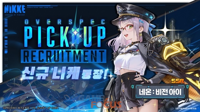 '네온 : 비전 아이'는 화력 게이지를 충전해 자신을 강화하는 SSR 화력형 니케로, 버스트 스킬 사용 시 자신의 공격 능력을 강화한다.