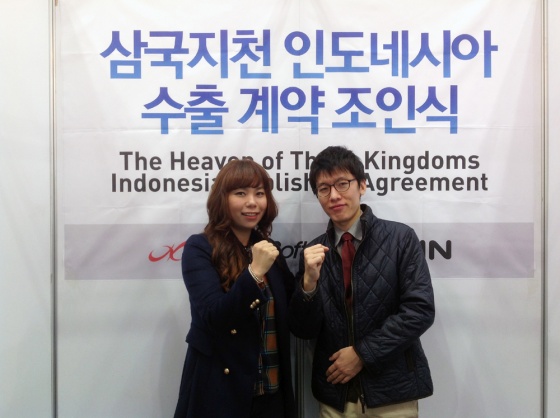 지난 8일 오전 11시경 B2B관 '한빛소프트 M10부스'에서 진행된 이번 인도네시아 수출 계약 조인식에는 한빛소프트 김유라 부사장과 PT.EPIN 이상윤 부분 대표가 참석했으며, 향후 전개할 인도네시아 게임 시장에 대한 다양한 의견을 교환했다. 특히 모 기업인 PT. Kreon의 전폭적인 지원 아래 인도네시아 전역에 걸친 PC방 유통망과 유저풀, 서비스 노하우를 공유하기로 합의됨에 따라 현지 시장에 공격적으로 삼국지천을 알릴 수 있게 됐다.