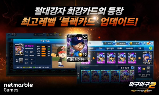 www.netmarble.net)는 모바일 야구 게임 '마구마구2 for Kakao'(이하 마구마구2, 개발사 넷마블블루)에 최상위 등급 '블랙카드'를 추가하는 등 대규모 업데이트를 실시했다.