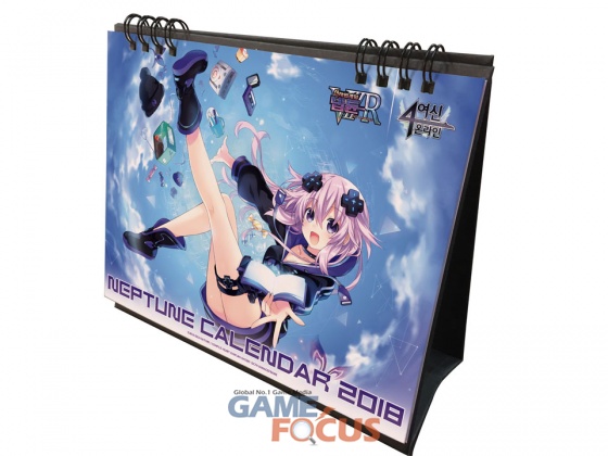 이번 '초차원게임 넵튠 캘린더 2018'은 A5변형(181x140mm) 크기의 탁상형 사이즈로, 4여신 온라인의 파스텔 풍 일러스트와 함께, 곧 한글화 발매 예정인 신작 '신차원게임 넵튠 VⅡR'의 신규 일러스트들로 구성되어 있다.
