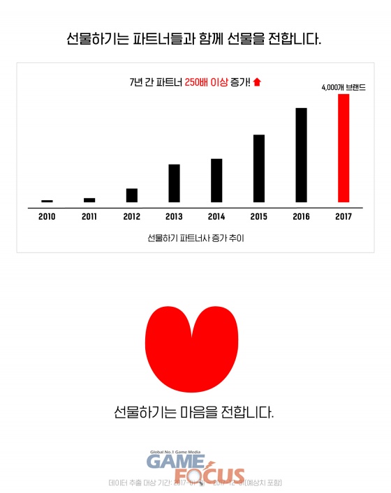 한편 카카오톡 선물하기는 파트너들과 함께 성장해나가고 있다. 2010년 12월에 15개 파트너와 서비스를 시작했으나, 7년만에 파트너수가 250배 이상증가해 현재 약 4,000개 파트너가 선물하기에서 상품을 판매 중이다. 파트너와 상품 수가 늘어감에 따라 카카오톡 선물하기는 선물을 고르는 이의 편의성을 높이기 위해 추천 및 큐레이션 기능을 강화하고 있다. 생일, 기념일, 이사 등 선물을 많이 하는 날은 물론 '겨울별미', '간식야식', '촉촉한선물' 등 위트 있는 테마에 맞춰 선물을 추천해줘 만족도를 높여나가고 있다.