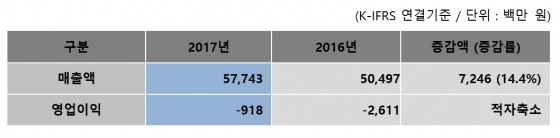 한편 회사 측은 “이번 2017년도 사업 성과는 외부감사전 재무제표를 기준으로 산정한 점정실적으로, 정확한 실적치 참고를 위해서는 향후 전자공시로 안내되는 감사결과보고서 등을 확인해야 한다”고 당부했다.