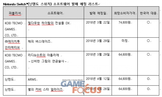 '마리오 테니스 에이스' 한국어 번역판은 2018년 희망소비자가격 64,800원에 발매될 예정이다.