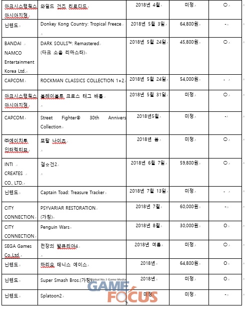 한국닌텐도가 Nintendo Switch 소프트웨어인 'Super Smash Bros.(가칭)'와 '마리오 테니스 에이스'의 한국어 번역판을 정식 발매한다.