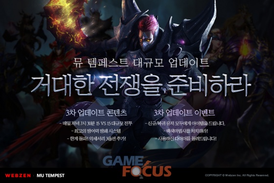 웹젠(대표 김태영)이 자사의 신작 웹게임 '뮤 템페스트(MU TEMPEST)'에서 업데이트를 진행한다.