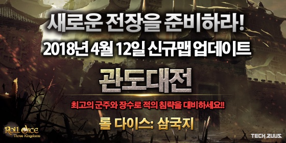 (주)테크주스(대표 이상원)는 카드배틀 보드게임 '롤 다이스: 삼국지'(이하 롤 다이스)에 사상 첫 신규 맵 '관도대전' 업데이트를 진행했다.