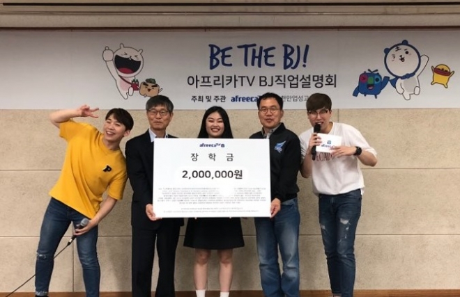 아프리카TV 서수길 대표는 이번 설명회에서 그 동안 BJ로 활동하며 1,657명의 유저들에게 기부 받은 별풍선 수익 100만원과 개인 기부금 100만원을 합쳐 총 200만원의 장학금을 학교측에 전달 했다. 앞으로도 서수길 대표는 ‘BJ케빈UP’이라는 이름으로 1인 방송을 진행하며 유저들에게 기부 받은 별풍선 수익을 여러 학교의 장학금으로 전달할 계획이다.