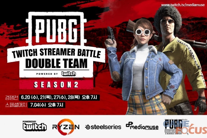 소셜 비디오 서비스 트위치가 펍지주식회사(대표 김창한)의 '플레이어언노운스 배틀그라운드(PUBG, 이하 배틀그라운드)'로 진행하는 대회인 '트위치 스트리머 배틀 PUBG 더블팀 시즌2(이하 PUBG 더블팀)'를 후원한다.