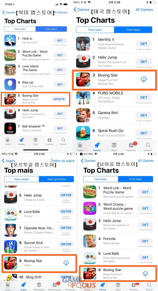 네시삼십삼분(대표 한성진, 이하 4:33)이 지난 12일 세계 140개국에 출시한 모바일 스포츠 게임 '복싱스타'가 해외 19개국에서 인기 게임 순위 1위를 기록했다. 특히 '복싱스타'는 출시 직후 영국∙불가리아를 비롯 해외 19개 국가 앱스토어에서 인기 게임 순위 1위를 차지했다.