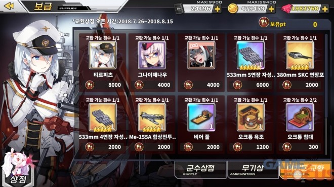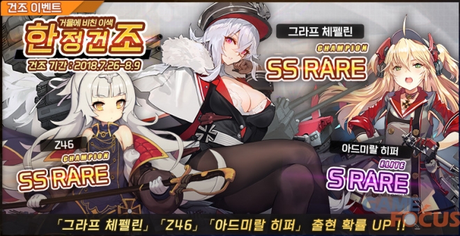 이 중 '그라프 체펠린', '아드미랄 히퍼', 'Z19', 'Z25', 'Z35', 'Z46'는 8월 9일 까지 진행되는 한정 건조를 통해 얻을 수 있으며, 나머지 캐릭터 또한 스테이지 진행 등 다양한 방법을 통해 획득할 수 있다.
