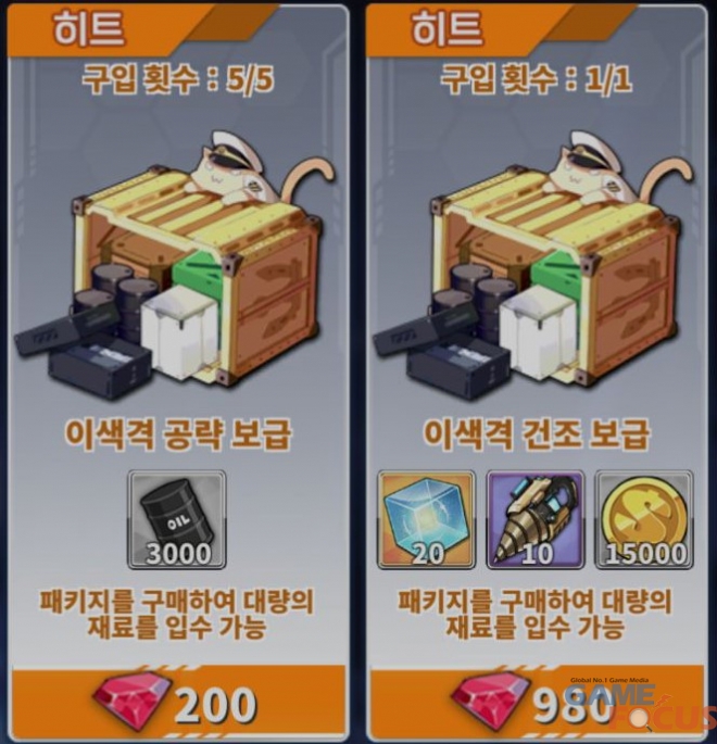 특히 '한정 공략 패키지', 건조에 필요한 각종 재료를 구매할 수 있는 '한정 건조 패키지' 가 추가된다. 해당 패키지는 구매 횟수에 제한이 있다.