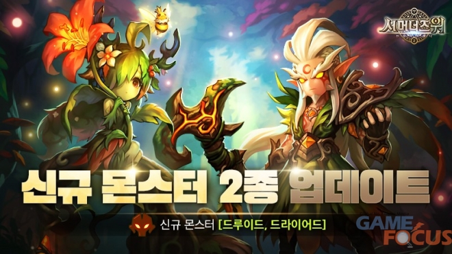 이번 업데이트를 통해 선보이는 신규 몬스터 2종은 서로 상반된 매력을 발산하는 태생 5성 '드루이드'와 태생 4성 '드라이어드'로, 아군을 지원하고 적을 공격하는데 탁월한 능력을 자랑한다.