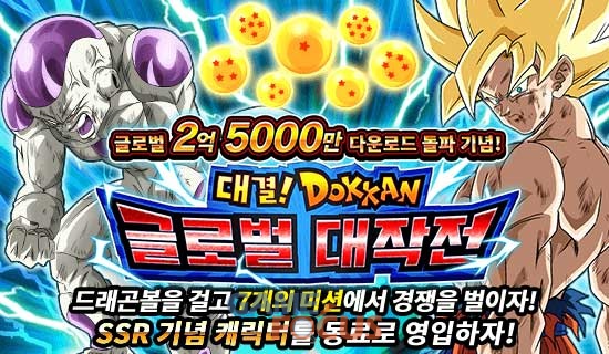 이번 2.5억 이벤트는 나메크성에서 대결하는 오공과 프리저를 모티브로 진행된다. 이에 인게임상의 뽑기 이벤트인 '더블 DOKKAN 축제'에는 '다단변신'이 가능한 '손오공'과 '프리저'가 첫등장 하며, 일본 유저와 전세계 유저가 7개의 드래곤 볼을 두고 대결하는 '대결! DOKKAN 글로벌 대작전' 이벤트도 진행된다. '대결! DOKKAN 글로벌 대작전'에서 승리한 국가에는 손오공, 진 국가에는 프리저가 모든 유저에게 지급된다.