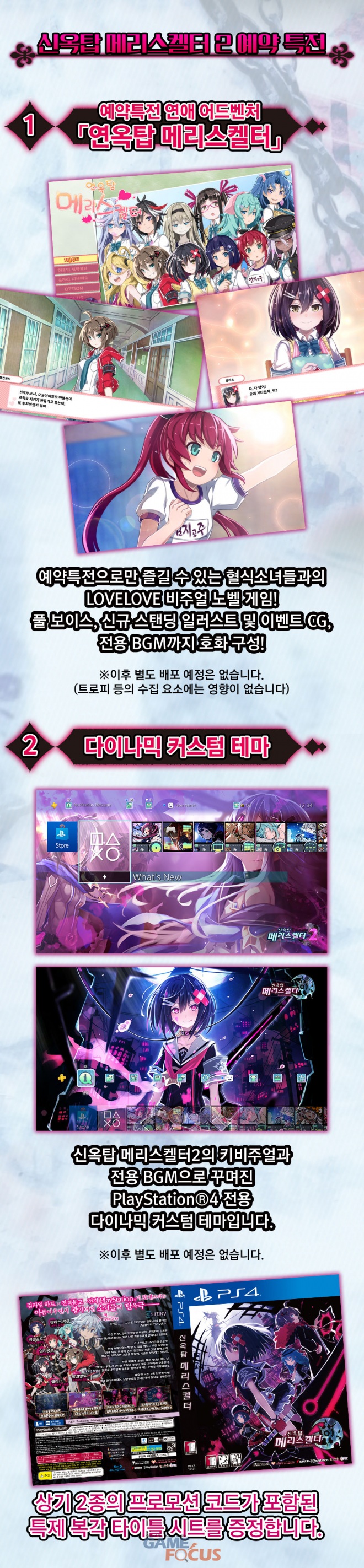 CFK가 PlayStation4 전용 롤플레잉 게임 '신옥탑 메리스켈터 2' 한국어 번역판의 발매일을 10월 18일(목)로 확정하고 한정판 소개 및 예약 판매 일정을 공개했다.