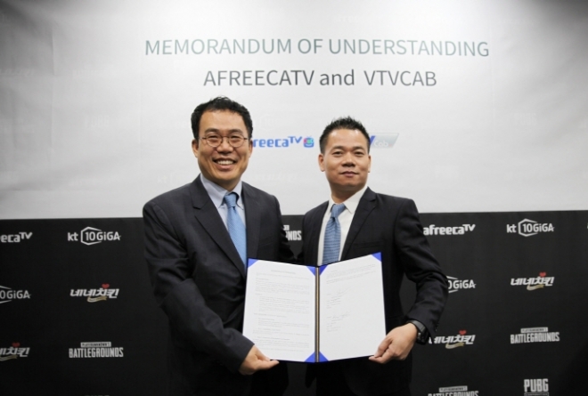 아프리카TV는 베트남 최대 유선방송사인 VTVcab과 현지 합작법인 설립에 관한 업무협약(MOU)을 체결했다고 12일(월) 밝혔다. 협약식은 아프리카TV 서울 잠실 오픈스튜디오에서 아프리카TV 서수길 대표와 VTVcab 황 응옥 후언(Hoang Ngoc Huan)회장이 참석한 가운데 진행됐다.