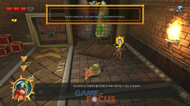 - 빠르고 작은 영웅 아스테릭스와 느리지만 파워풀한 오벨릭스, 두 캐릭터를 실시간으로 전환하며 게임을 플레이 하는 것이 가능하다.
