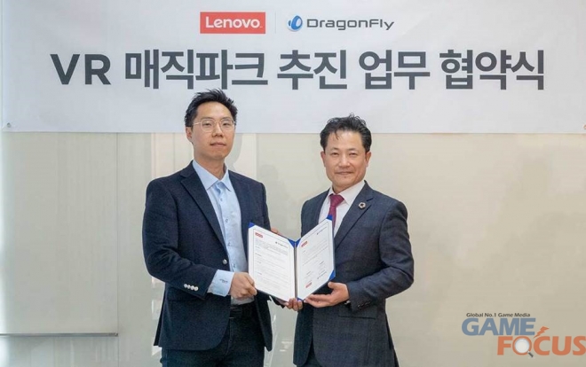드래곤플라이(대표 박철우)가 한국레노버(대표 강용남)와 VR e-스포츠에 특화된 VR 테마파크의 명칭을 '레노버 VR MAGIC PARK'로 확정하는 협약서를 체결했다. '레노버 VR MAGIC PARK'는 오는 1월 중 개장할 예정이다.