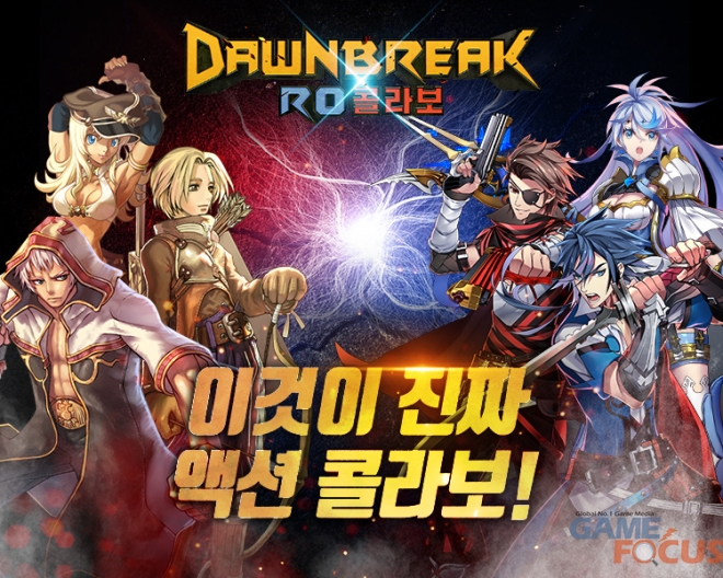 이번 티저 이미지에서는 기존 모바일 게임 '던브레이크'의 대표 캐릭터 '아니스', '헤일리'와 '라그나로크 온라인'의 캐릭터 '화이트스미스', '아처' 등 역동적으로 표현되어 액션 콜라보레이션을 예고했다.
