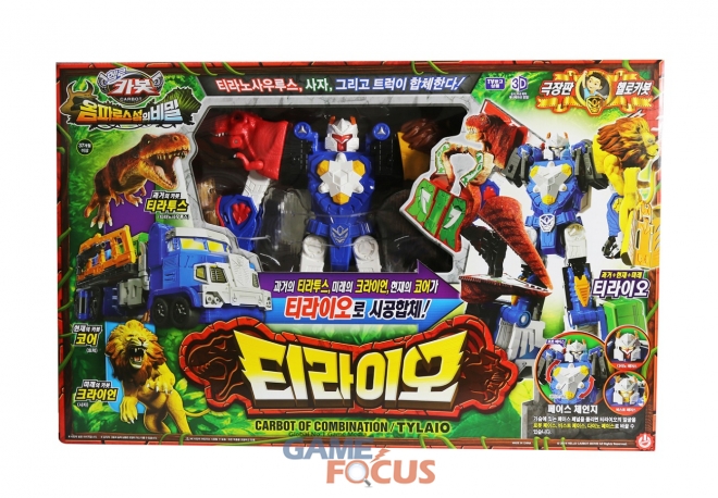 사은품으로 제공되는 '티라이오'는 극장판 헬로카봇:옴파로스 섬의 비밀'의 메인 아이콘으로 과거를 상징하는 '티라투스(티라노사우루스)'와 미래의 '크라이언(사자)', 현재의 '코어(트럭)'가 시공합체한 콤비네이션 카봇이다.(대형마트 판매 가격 티라이오 12만 5000원)