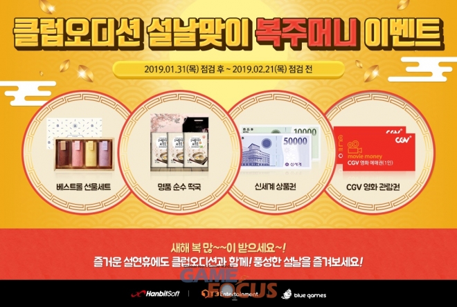 클럽 오디션 관계자는 "민족 최대 명절인 설을 맞아, 그 동안 오디션을 아껴주고 사량해주신 유저들뿐만 아니라 신규 유저들에게도 많은 혜택이 돌아가도록 이벤트를 마련했다"며 "게임 아이템 및 경품 획득을 통해 풍성한 명절을 보내시기 바란다"고 전했다.