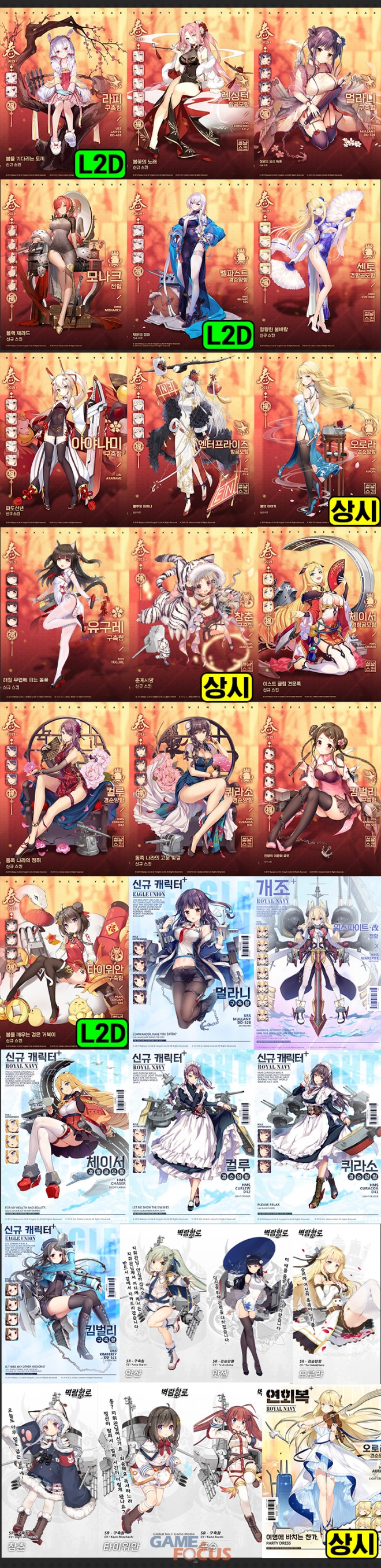 이번 업데이트를 통해 '타이위안 - 봄을 깨우는 검은 거북이[라이브 2D]', '라피 - 봄을 기다리는 토끼[라이브 2D]', '벨파스트 - 채운의 장미[라이브 2D]', '엔터프라이즈 - 블루밍 피어니', '아야나미 - 파도신년', '센토 - 청량한 봄바람', '렉싱턴 - 봄꽃의 노래', '모나크 - 블랙 제라드', '유구레 - 해질 무렵에 피는 봄꽃', '멀라니 - 칭양의 요리 특훈', '퀴라소 - 동쪽 나라의 고운 빛깔', '컬루 - 동쪽 나라의 정취', '체이서 - 이스트 글림 견문록'가 새롭게 추가된다.