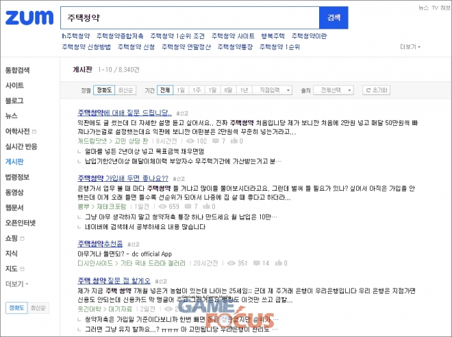 예를 들어 줌닷컴 검색창에서 '주택청약'을 입력하면, 가점 계산법, 청약 신청 주의사항 등 누리꾼들이 커뮤니티에 공유한 알짜 정보 게시글을 검색 결과에서 확인할 수 있다.