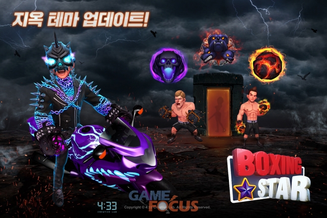 네시삼십삼분(대표 한성진, 이하 4:33)이 자사가 서비스 중인 모바일 스포츠 게임 복싱스타에서 신규 콘텐츠 지옥 테마를 업데이트했다.