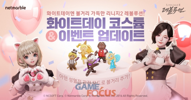 넷마블(대표 권영식)이 자사의 모바일 MMORPG '리니지2 레볼루션(이하 레볼루션, 개발사 넷마블네오)'에서 화이트 데이 기념 이벤트를 실시하고 신규 코스튬 및 탑승(변신)펫을 선보인다.