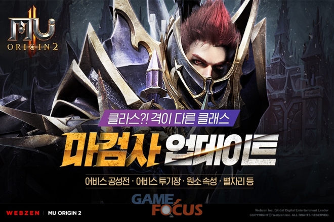 웹젠(대표 김태영)의 대표 모바일 MMORPG '뮤 오리진2'가 신규 클래스 '마검사'를 업데이트한다.