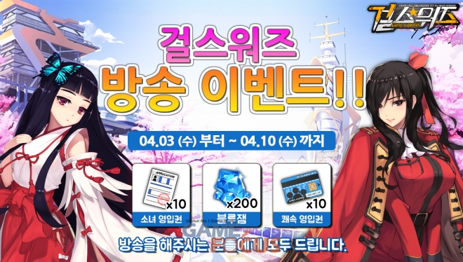 게임 생방송 앱 '미러티브'에서 열리는 이번 '걸스워즈(Girls Wars)' 콜라보 방송 이벤트는 3일(수)부터 10일(수)까지 일주일간 진행된다. 이벤트 기간 동안 생방송 앱 미러티브에서 '걸스워즈(Girls Wars)'를 주제로 10분 이상 방송을 하면 '걸스워즈(Girls Wars)'의 블루잼, 소녀 영입권 등 게임 아이템을 받을 수 있는 특별한 이벤트다. 추가로 미러티브 내에서 사용할 수 있는 미러티브 코인도 별도 증정한다.