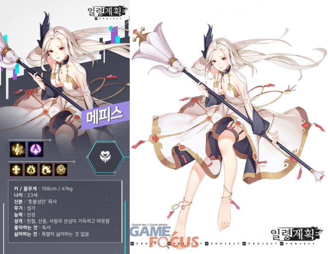 친절하고 신중한 성격의 소유자로 신성한 능력을 선보이는 힐러 '메피스', 사랑이 충만하고 따뜻한 성품으로 사람들을 도움이 필요한 아이처럼 대한다. 독서가 취미이고, 특별히 싫어하는 것은 없다.