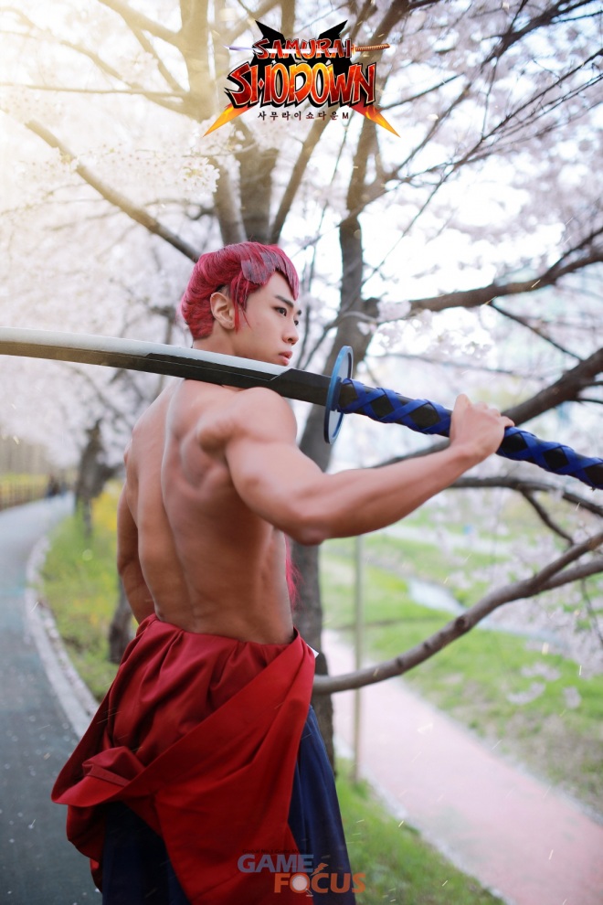 특히 이번 화보는 흩날리는 벚꽃 아래 촬영이 진행되어 '사무라이 쇼다운 M'의 게임 배경 곳곳에 등장하는 벚꽃 그래픽의 연출을 담아냈다.