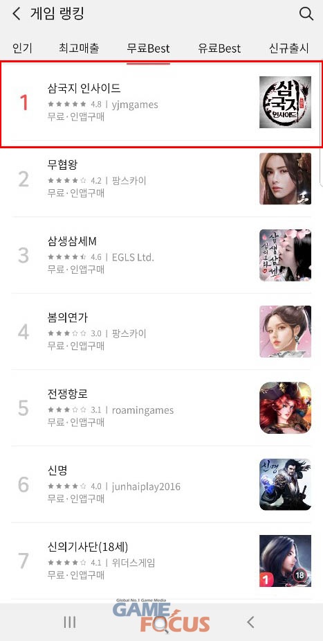 '삼국지인사이드'는 모바일 최초 장수제 시스템과 세련된 그래픽으로 이용자들의 겜심 사냥에 성공하며 출시 30일 만에 구글 플레이와 애플 앱스토어에서 최고 매출순위 20위권을 기록한 바 있다.