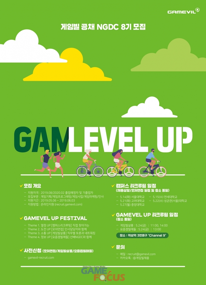 특히 다양한 리쿠르팅 활동도 병행한다. 'LEVEL UP'을 키워드로 한 이번 채용에는 인사 담당자가 서울 등 다양한 지역의 대학교로 직접 찾아가는 '캠퍼스 리쿠르팅'과 '모의 면접'을 비롯해 취업 준비생들과 현업 담당자가 토론하며 정보를 공유하는 '게임빌 살롱'도 운영한다.