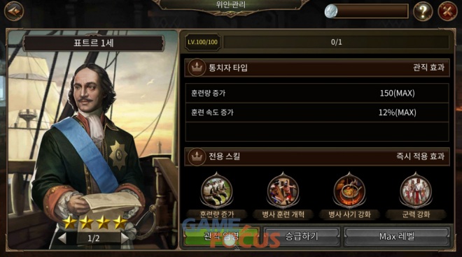 관심을 모은 신규 위인은 '표트르 1세'로 확정됐다. 4등급의 통치자 타입인 '표트르 1세'의 관직 효과는 훈련량과 훈련 속도 향상이다. 또, 일정 레벨에 도달할 때마다 훈련량 증가, 병사 훈련 개혁, 병사 사기 강화, 군력 강화 등의 스킬이 개방되어 군사력 강화를 원해온 게이머들에게 인기를 끌 것으로 예상된다.