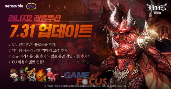 넷마블은 편의점 CU와 8월 한 달 간 '리니지2 레볼루션'의 아이템을 증정하는 제휴 이벤트도 실시한다. 오는 8월 31일까지 CU 멤버십 앱 '포켓 CU'를 통해 이벤트에 참여할 수 있으며 리니지2 레볼루션의 공식 페이스북 페이지에서 진행되는 다양한 이벤트를 통해 CU 편의점에서 사용 가능한 금액권과 상품 할인권도 획득할 수 있다.