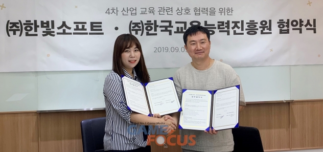 한빛소프트가 한국교육능력진흥원(구 한국방과후교육진흥원)과 4차 산업혁명 교육 관련 상호 협력을 위한 양해각서(MOU)를 체결했다.