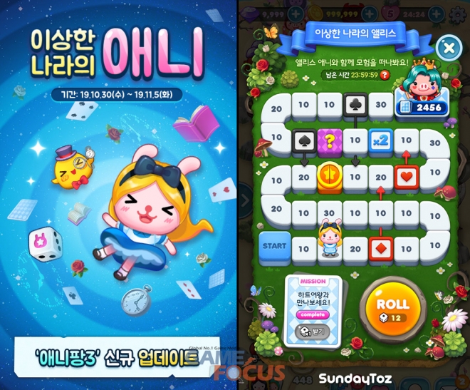 이번 업데이트로 첫 선을 보이는 콘텐츠로는 미니 게임 '이상한 나라의 애니'가 눈길을 끈다. '이상한 나라의 애니'는 퍼즐 스테이지를 플레이하면 획득하는 주사위로 말판의 캐릭터 '애니'가 이동한 위치에 따라 아이템과 점수를 획득하는 게임이다. 캐릭터가 이동하는 말판은 두배의 점수를 주는 더블 보드, 히든 말판으로 이동하는 스타 보드 등으로 구성되어 다양한 재미를 전할 예정이다. 특히 다른 이용자들과 순위 경쟁을 즐기며 미션을 수행하면 유료 재화를 비롯해 하트, 추가 이동 등 아이템 보상을 얻을 수 있는 점은 이 게임의 재미를 더할 요소로 꼽힌다.
