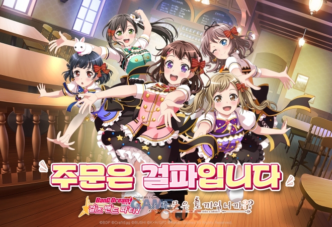 카카오게임즈(각자 대표 남궁훈, 조계현)가 크래프트에그(대표 모리카와 슈이치)와 부시로드(대표 하시모토 요시타카)의 인기 모바일 리듬게임 '뱅드림! 걸즈 밴드 파티!'에서 '주문은 토끼입니까??' 캐릭터 컬래버레이션 이벤트를 진행한다.
