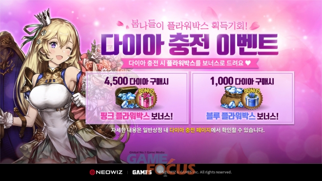 한편, 신규 5성 마법형 용병 '헬가'의 외전 스토리가 추가되었으며, 이 외에도 봄을 맞이해 4월 2일까지 다이아를 충전하면 랜덤 확률로 5성 스킬북, 5성 용병 랜덤권, 5성 스킬 전수권 등 각종 인기 아이템을 추가로 획득할 수 있는 '봄나들이 플라워박스' 프로모션과, 5성 지원형 '플로리아'를 획득할 수 있는 조각미션 이벤트도 함께 진행된다.
