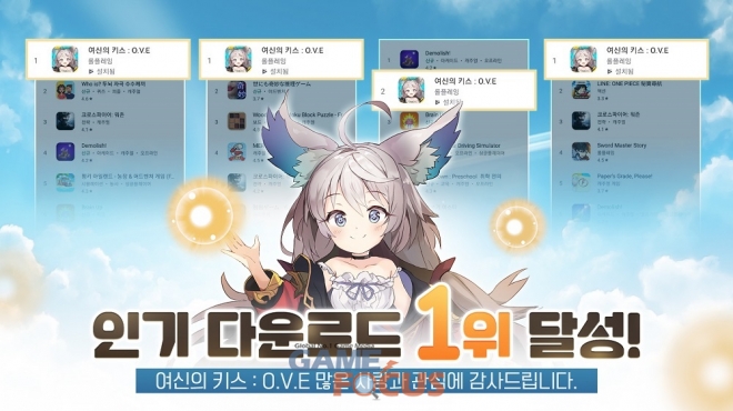 플레로게임즈 신작 '여신의 키스: O.V.E', 구글 플레이 인기 순위 1위 달성