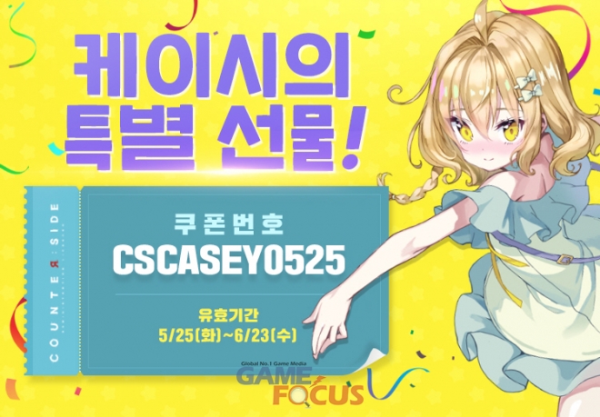 이와 함께, 신규 유닛 출시를 기념해 깜짝 쿠폰을 공개했다. 쿠폰 입력란에 'CSCASEY0525'를 입력하면 인게임 재화 '1,000 쿼츠'를 얻을 수 있다. 달성 레벨에 따라 다양한 보상을 얻을 수 있는 신규 '카운터패스'를 출시했다. 접속, 재화 사용, 게임 플레이 등 6월 28일까지 패스 미션을 수행해 신규 캐릭터 '케이시 빈즈', '채용 계약서', '적성핵' 등을 획득 가능하다.