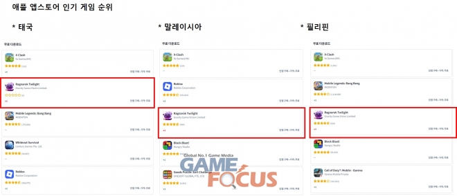 Ragnarok: Twilight은 동남아시아 지역 정식 론칭 후 구글 플레이 인기 순위 태국 1위, 말레이시아 1위, 인도네시아 1위, 필리핀 1위, 싱가포르 2위를 기록하는 등 상위권을 유지하고 있다. 태국, 필리핀 지역에서는 구글 플레이 매출 순위가 점차 상승해 10위권에 진입했다.