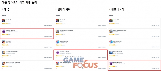 그라비티의 홍콩 지사인 그라비티 게임 비전(Gravity Game Vision, GGV)이 동남아시아 지역에 론칭한 MMORPG ‘Ragnarok: Twilight’이 론칭 초반 양대 마켓 인기 및 매출 순위 상위권을 점령하며 흥행몰이 중이라고 밝혔다.