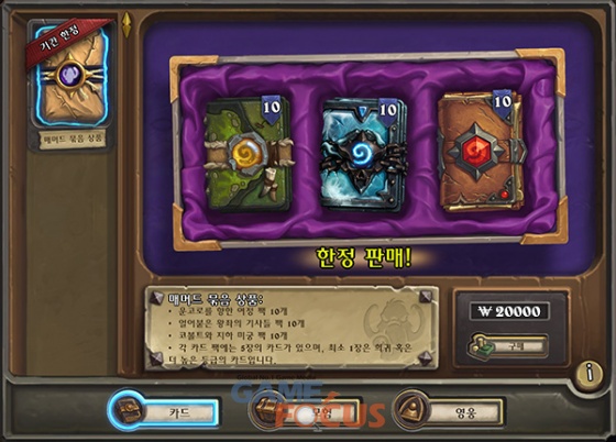 또한, 총 30개의 카드 팩으로 구성된 '매머드 묶음 상품'의 경우 이번 이벤트에 참여하지 않아도 10.2 업데이트부터 한정 기간동안 게임 내 상점을 통해 Battle.net 계정당 1개씩 20,000원에 구매 가능하다.