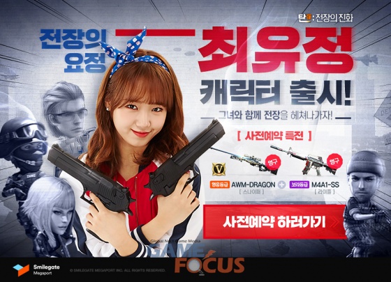스마일게이트 메가포트(대표 장인아)가 자사가 서비스하고 있는 모바일 FPS '탄: 전장의 진화(이하 탄)'에서 인기 걸그룹 위키미키의 최유정을 모델로 활용한 신규 캐릭터를 공개하고, 정식 업데이트 전까지 사전 예약을 실시한다.