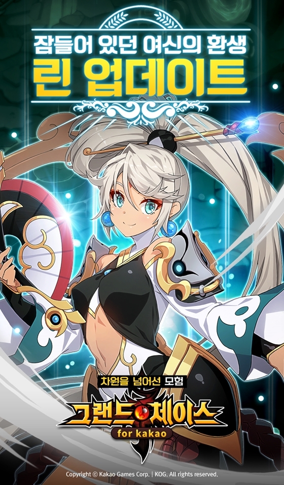 카카오게임즈(각자대표 남궁훈, 조계현)가 서비스하고 KOG(대표 이종원)에서 개발한 인기 모바일 RPG '그랜드체이스 for kakao'에 17일 신규 SS등급 치유형 영웅 '린'이 업데이트됐다.