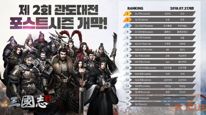 이펀컴퍼니(Efun Company Limited, 대표 이명)이 Teamtop Games에서 개발하고 자사가 서비스하는 모바일 전략 SLG '삼국지M'의 제2회 관도대전 포스트시즌을 시작한다.