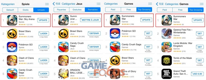 '서머너즈 워'는 지난 17일 기준, 독일과 프랑스를 비롯해 네덜란드, 벨기에, 그리스 등 유럽 주요 국가와 아프리카 알제리 등에서 애플 앱스토어 게임 매출 1위에 다시 올라서며 오랜 기간 사랑 받는 글로벌 게임의 저력을 보였다.
