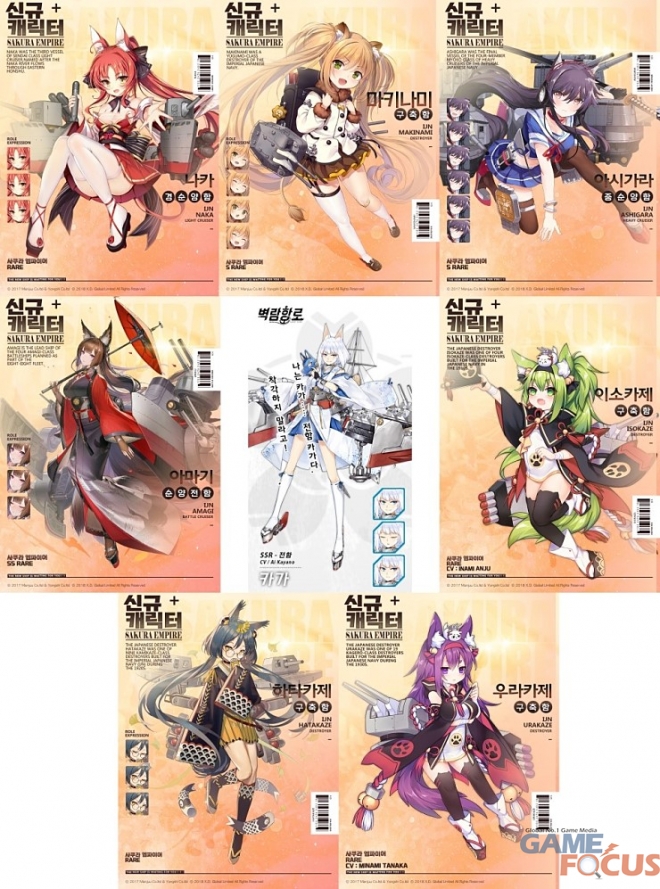 먼저 '벽람항로'의 인기 캐릭터 항공모함 '카가' 가 전함으로 변한 특수 캐릭터로 등장하는 것은 물론, 아마기, 아시가라, 마키나미, 하타카제, 나카, 우라카제, 이소카제, 나가츠키 등 총 9개의 신규 캐릭터가 대거 추가되었다.